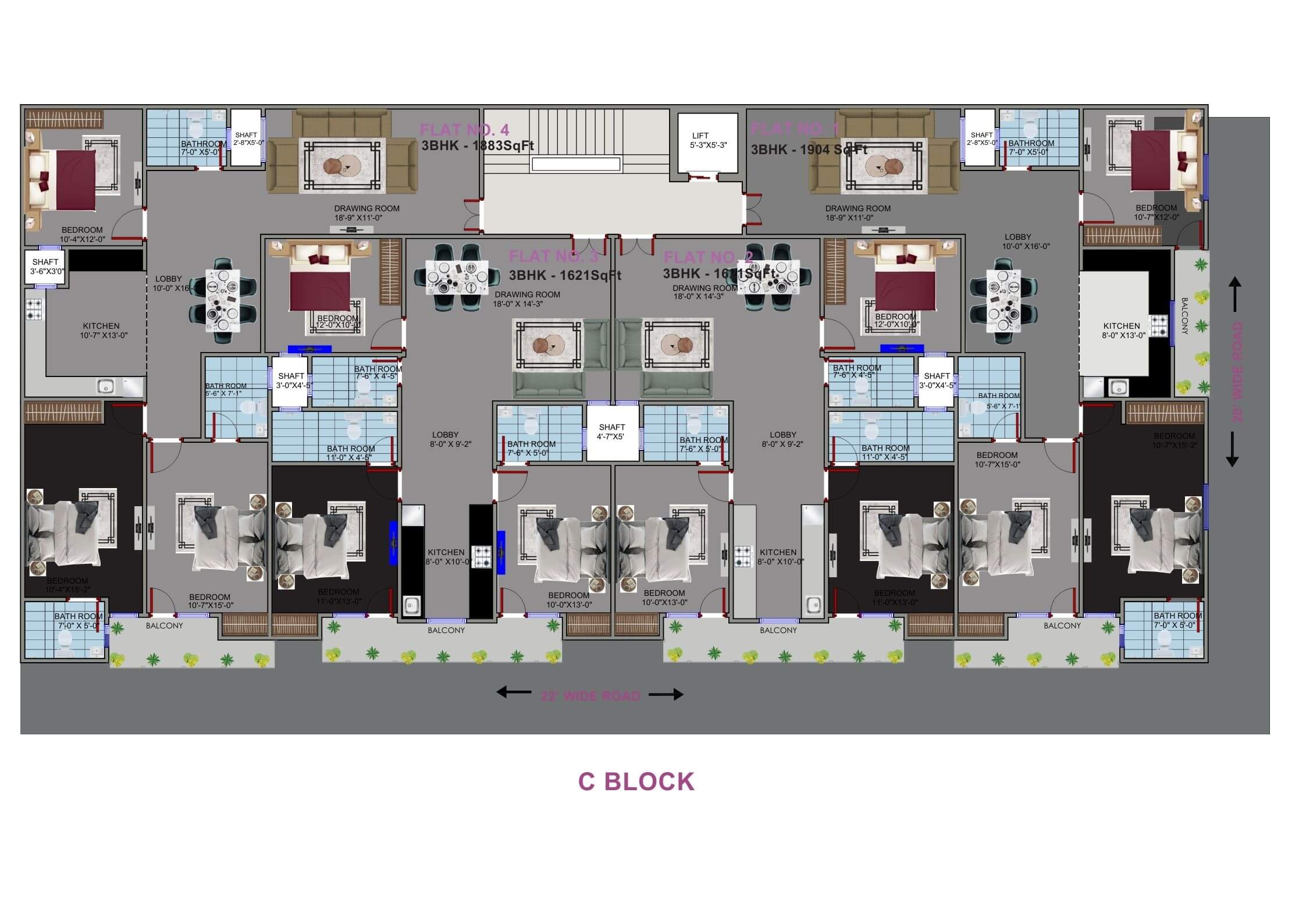 | Balconies | 2 | 1 | 1 |